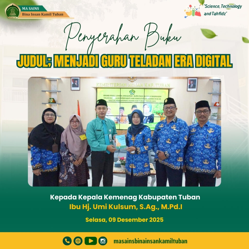 Buku tersebut diberikan langsung oleh Kepala MA Sains Bina Insan Kamil Tuban kepada Kepala Kemenag Kabupaten Tuban.